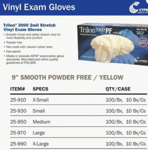 Guantes de LatexTrilon 2000 PF con guantes de examen de vinilo MC3, sin polvo, sin látex, guantes médicos no estériles – marfil, talla XL, 100 unidades, 1 caja
