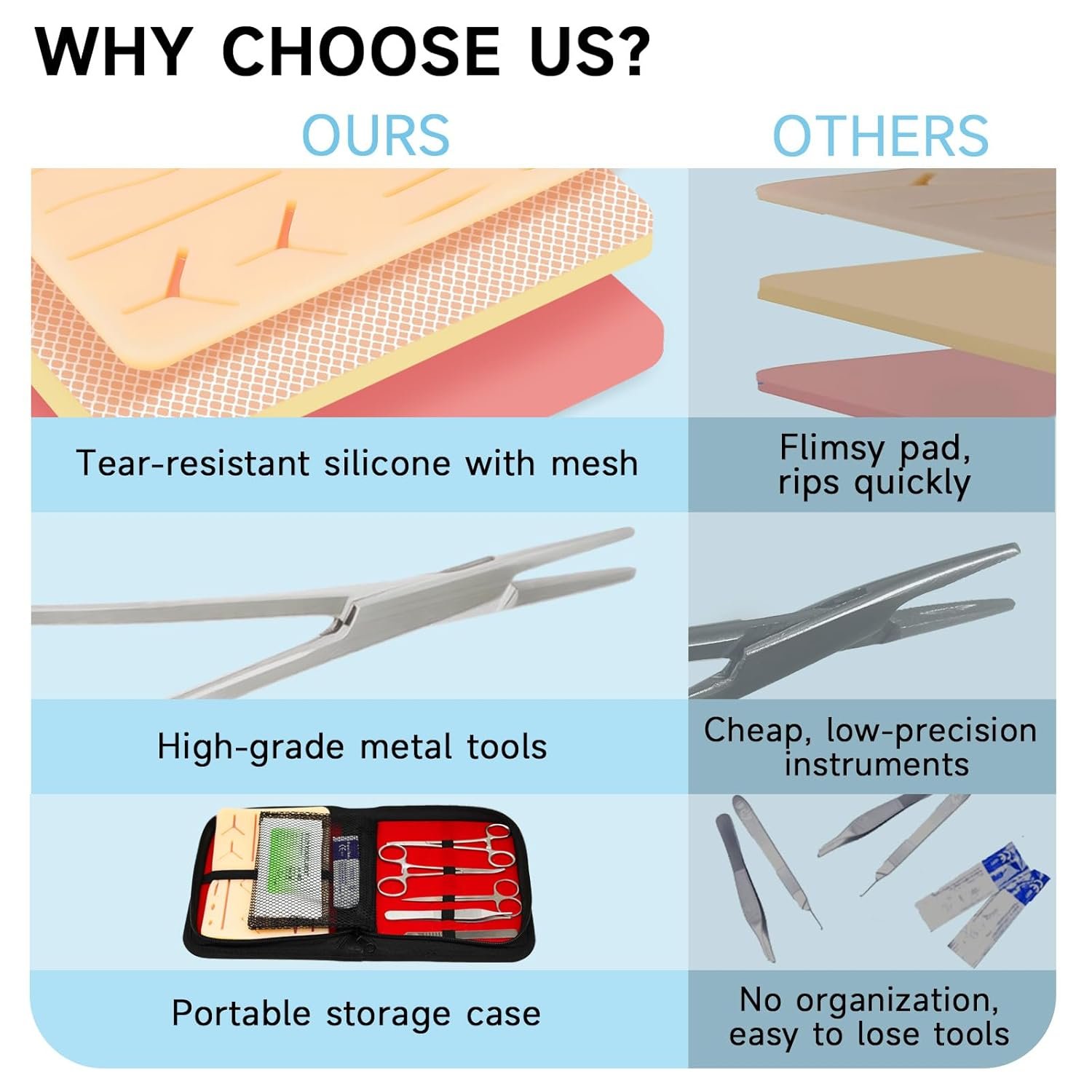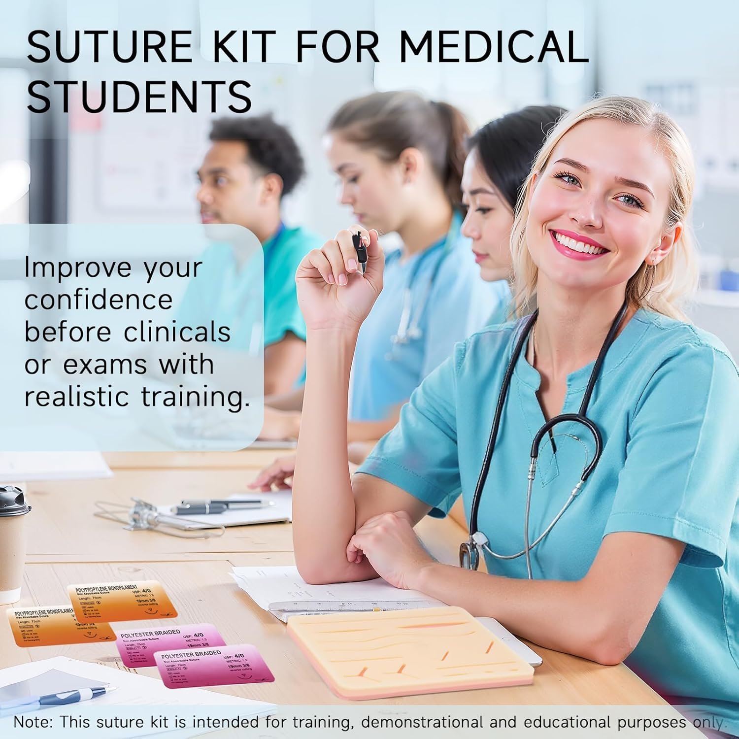 - Ideal para la práctica de sutura: perfecto para estudiantes de medicina, enfermería y veterinaria, enfermera practicante o asistente médico en entrenamiento. El kit de sutura también es ideal para enseñar demostraciones y práctica antes de comenzar una residencia o un trabajo en el campo de medicina. El kit de práctica de sutura es una herramienta esencial para el aprendizaje práctico y mejorar tu confianza antes de los exámenes. También es un regalo perfecto para estudiantes de medicina