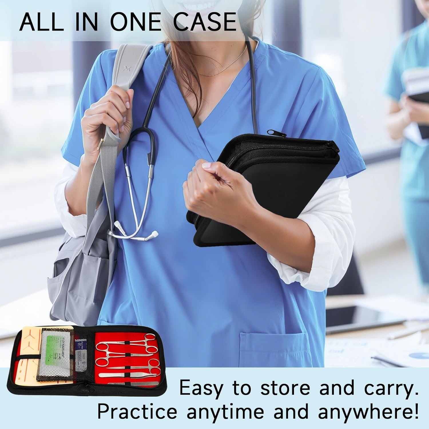 - Estuche compacto y portátil: este kit de sutura de práctica viene con una funda portátil con bolsillos de malla y secciones categorizadas, para que cada herramienta y paquete de sutura tenga su propio espacio dedicado. Ya no hay desorden. Ya sea que estés estudiando en casa o en la escuela, todo se mantiene organizado, fácilmente accesible y listo para practicar en cualquier momento y en cualquier lugar. Ideal para preparación de exámenes o demostración de enseñanza