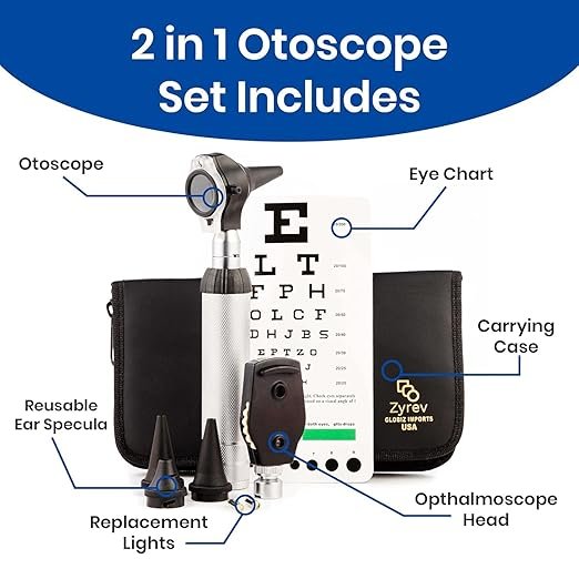 Zyrev Otoscopio 2 en 1 Oph Set – Perfecto para estudiantes de enfermería y medicina